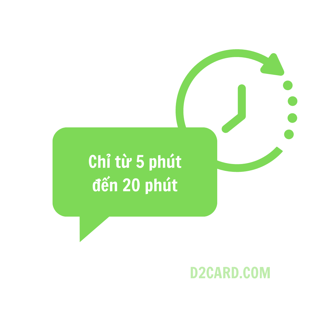 Để đảm bảo quyền lợi cũng như lợi ích của khách hàng khi sử dụng dịch vụ của D2card chúng tôi cam kết giải ngân nhanh nhất trong vòng 5 phút đến 1 giờ sao khi giao dịch hoàn tất